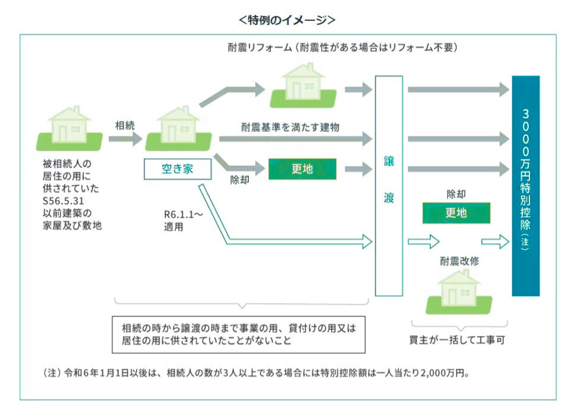- ・令和6年1月1日以後の譲渡から買主が耐震改修等を行っても適用対象