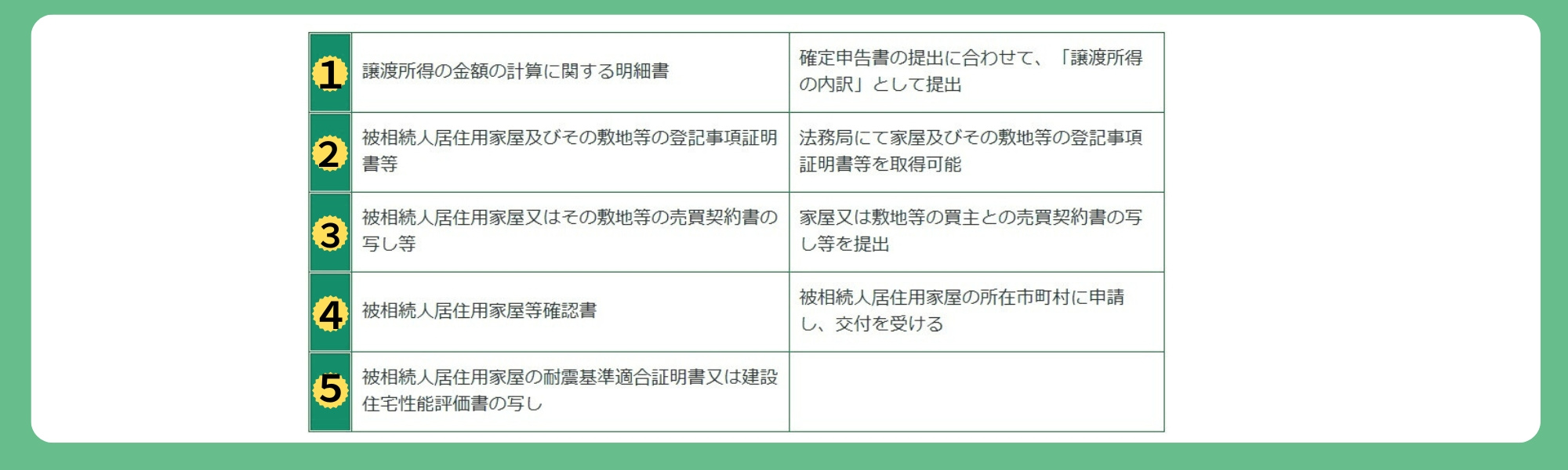 - (2)家屋の取壊し、除却又は滅失後の敷地等を譲渡する場合(各書類の詳細は(1)と同じ)